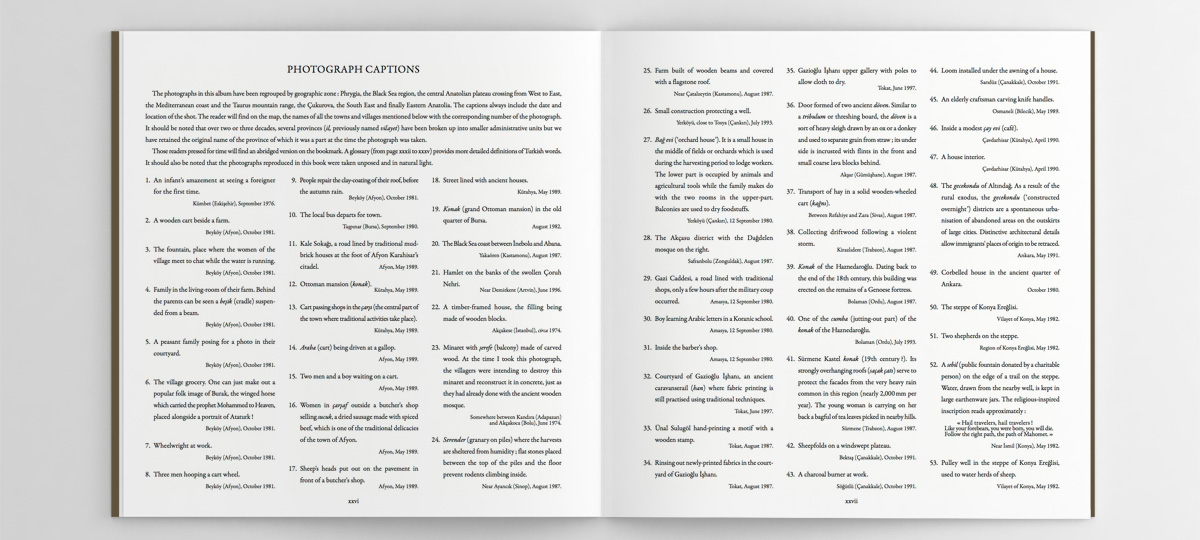 Format : 30 x 30 cm ; 192 pages including 156 pages of photographs printed with tritone process on 170g/m² matte coated paper, with a map, glossary and bookmark ; hardcover with film-coated dust-flap ; net weight : 1,9kg