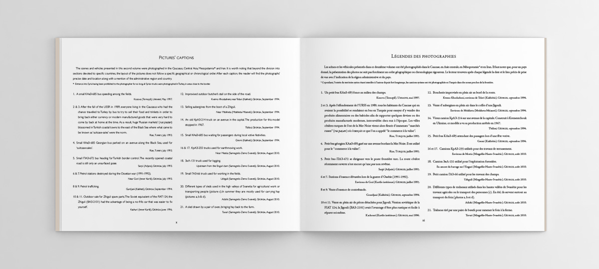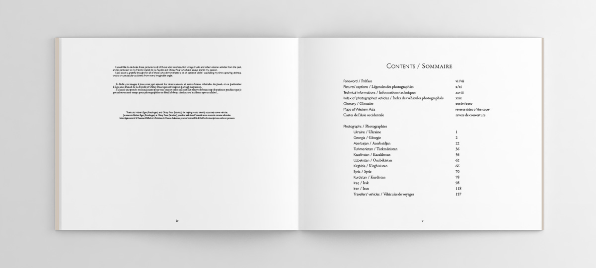 Format 24 x 30 cm ; 216 pages including 174 pages of photographs printed in quadrichromy on 170 g/m² matte coated paper, with 4 maps ; soft binding with flaps ; weight : 1,4 kg